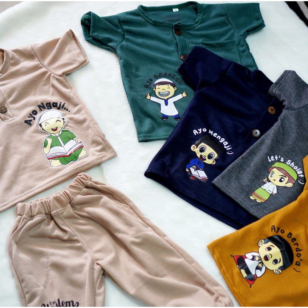 KIANO SET CELANA PANJANG AYO MENGAJI / BAJU ANAK SET UNISEX
