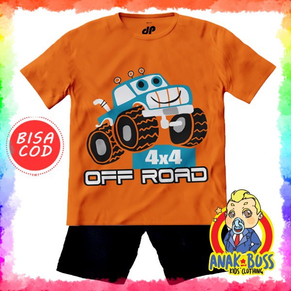 Kelebihan - Kelebihan membeli Setelan Kaos Anak Laki-Laki / Baju Anak Laki-Laki Lengan Pendek Motif Car Off Road 1-10 Tahun - AB di Toko ini