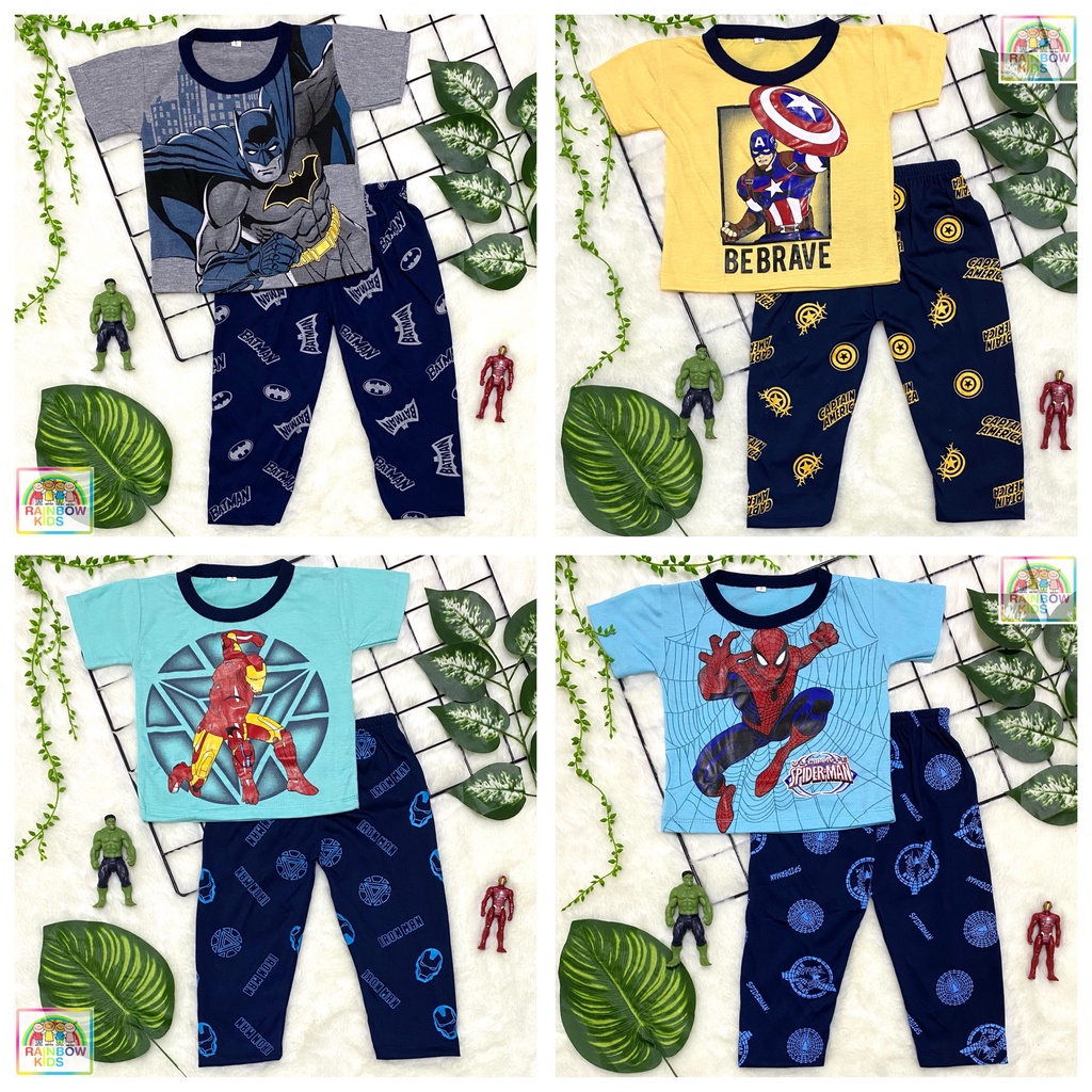 RAINBOW SETELAN / SET BAJU ANAK COWOK / UNISEX CELANA PANJANG CP 1-8 TAHUN SUPERHERO WARNA